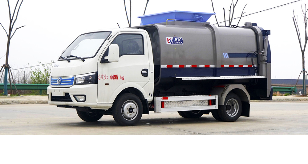 垃圾箱底部设置大量过滤孔,实现箱内餐厨垃圾固液的初步分离,装载能力强并配备有大容量污水箱;配套液压驱动高压清洗系统,可对整车及工作装置进行清洗。