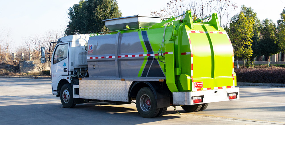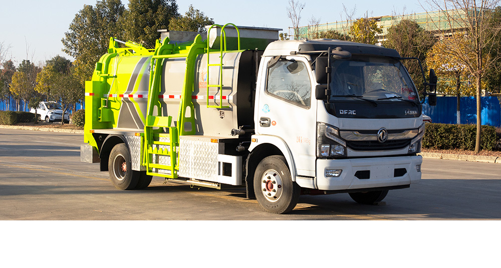 垃圾箱底部设置大量过滤孔,实现箱内餐厨垃圾固液的初步分离,装载能力强并配备有大容量污水箱;配套液压驱动高压清洗系统,可对整车及工作装置进行清洗。