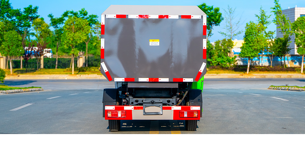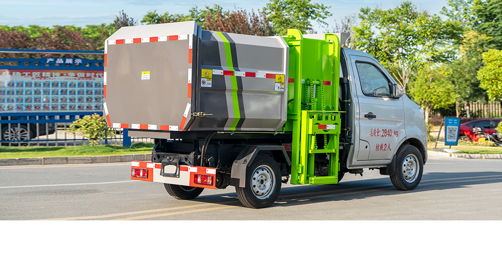 一车多配,能与多个垃圾桶联合作业,循环运输,连杆上料机构具有结构简单、性能可靠、上料循环时间短、运行效率高等优点;垃圾箱上侧设有挡板、翻桶架,投料口独特设计,可防止上料时垃圾漏洒。