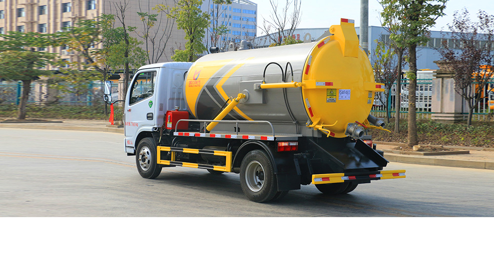 吸污车由汽车底盘、取力器、传动轴、真空吸污泵、压力罐体、液压部分、管网系统、真空压力表、视粪窗、洗手装置等组成,随车配置大功率真空吸污泵和优质液压系统,罐体封头一次压铸成型、罐体可后开、双顶自卸。