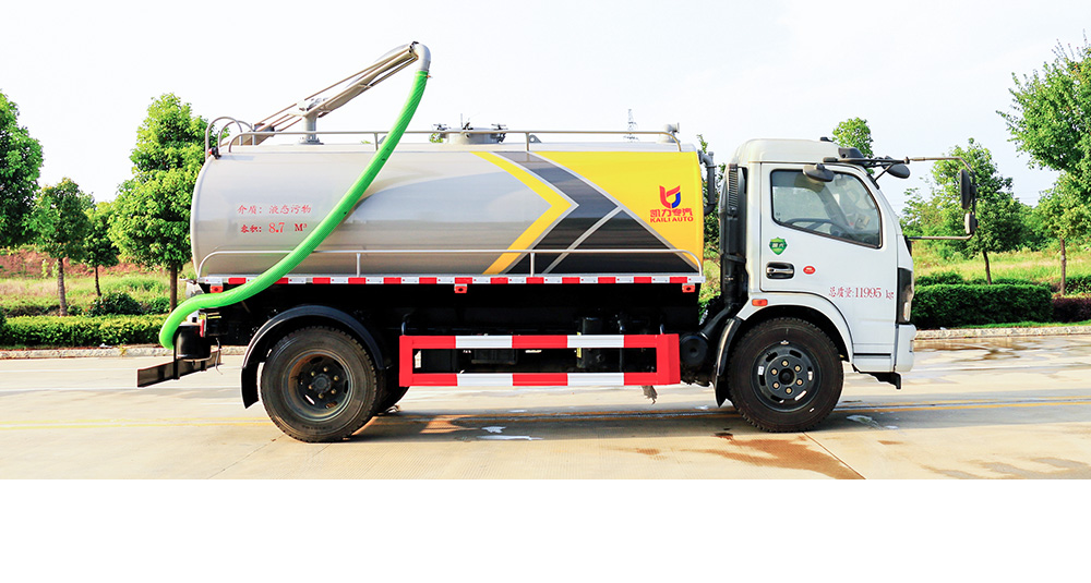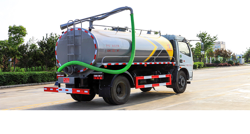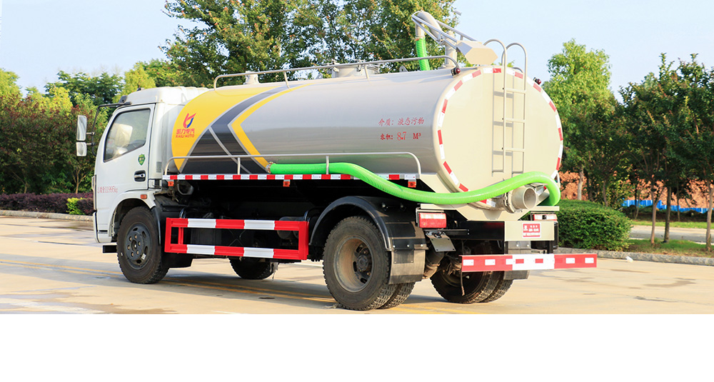 吸粪车由汽车底盘、油水分离器、水气分离器、专用真空吸粪泵、容积压力表、管网系统、吸物导管、自流阀、真空罐体、连通器(视类窗)、全自动防溢阀、360°旋转吊杆组成,多方位无死角抽污,罐口可直接装载污水。吸粪车用于抽吸粪便、污水、污泥浆和混有较小悬浮杂物的液体,还可用于突发环境污染事故的应急处理。