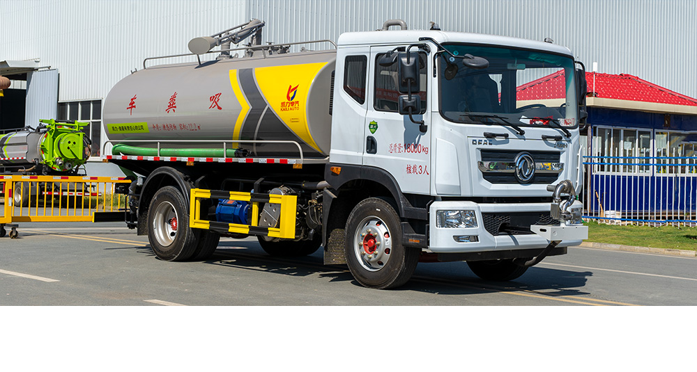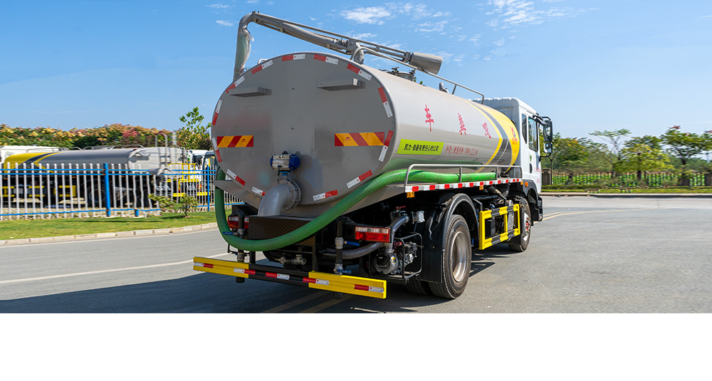 吸粪车由汽车底盘、油水分离器、水气分离器、专用真空吸粪泵、容积压力表、管网系统、吸物导管、自流阀、真空罐体、连通器(视类窗)、全自动防溢阀、360°旋转吊杆组成,多方位无死角抽污,罐口可直接装载污水。吸粪车用于抽吸粪便、污水、污泥浆和混有较小悬浮杂物的液体,还可用于突发环境污染事故的应急处理。