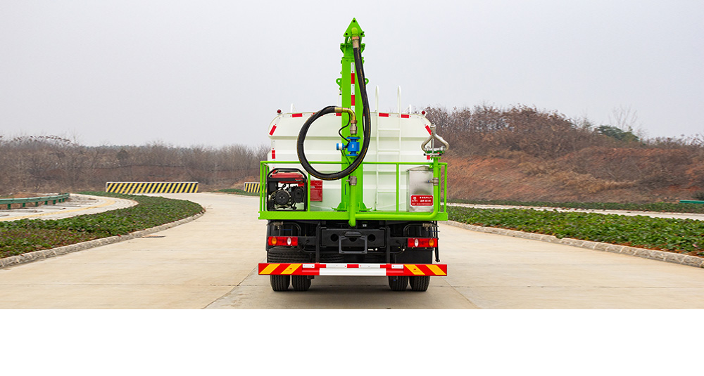 该车辆结构紧凑、布局合理、部件做工精细、产品配置完善、操作性能好,采用椭圆形或者方圆形结构水罐,驾驶室和罐体中间有量管,使水罐内的水量一目了然。罐体尾部有操作平台,平台有安全防护栏保障操作人员安全,平台上有爬梯方便操作人员上下车观察罐内情况。