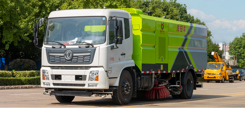 具有路面洒水、冲洗、扫路、清洗、降尘等多种功能。同时配有高压水枪可对道路卫生死角、牛皮癣及车辆自身进行清洁作业采用“中置两扫盘+中置宽吸嘴+内置高压主喷杆+左右高压侧喷杆”布置,小流量高压水泵,左右喷杆V形布置和吸嘴内置主喷杆无间隙高压喷嘴喷水,洗净率高、作业速度快。