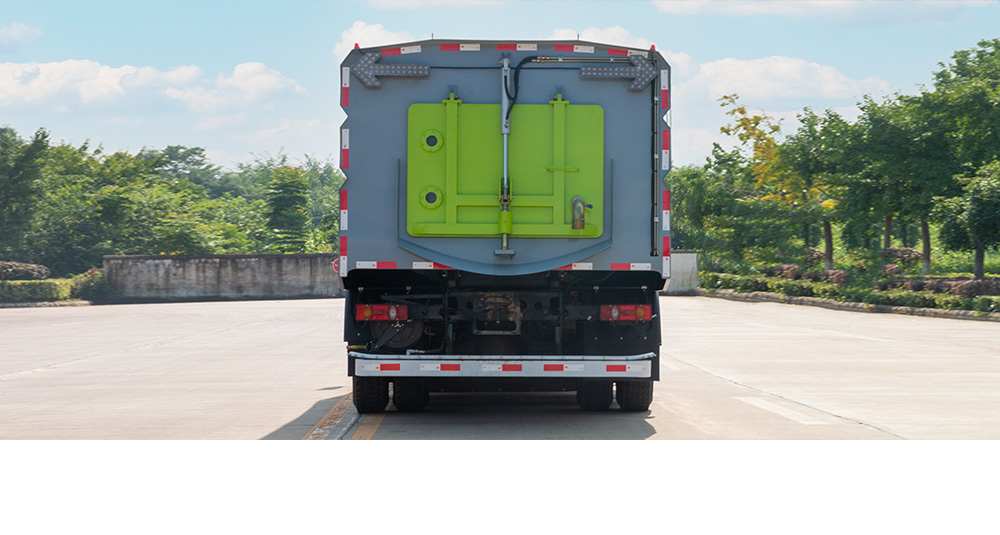 垃圾箱采用长方形瓦楞结构,上装结构可靠,造型美观,车辆使用寿命长电机。高压水泵、电气元件、液压元件采用知名品牌产品,质量可靠。垃圾箱材质采用不锈钢材质,配备专用高效风机,综合性能提升35%,作业能耗最高降低28%,风机叶片不易磨损,吸力强劲,清扫效率高。