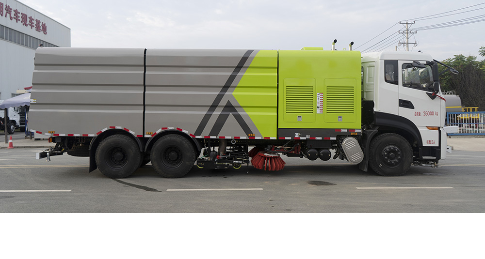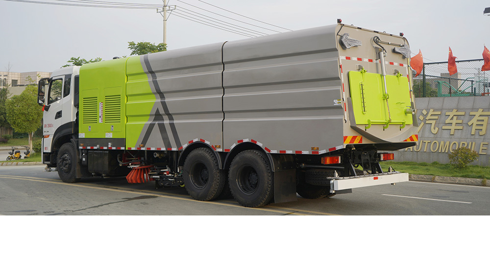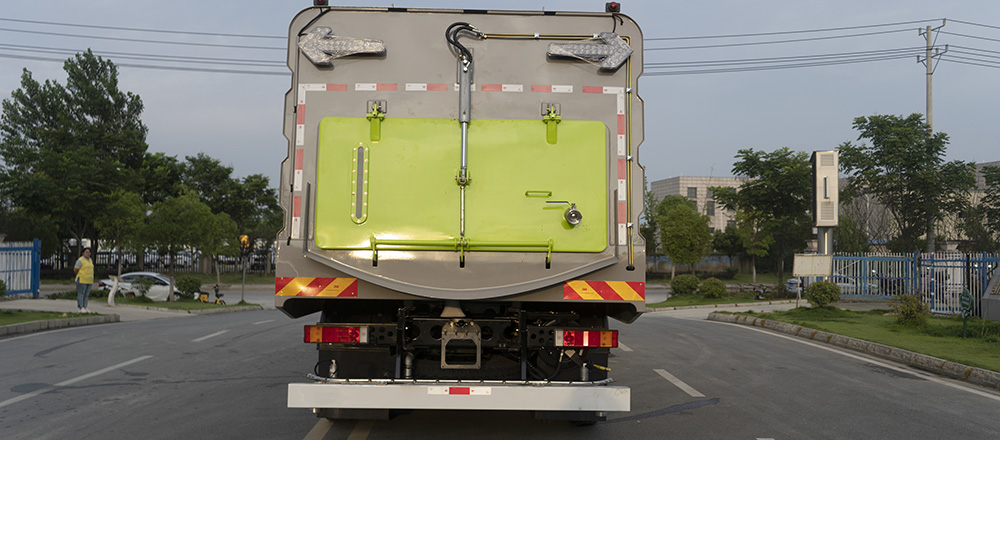 垃圾箱采用长方形瓦楞结构,上装结构可靠,造型美观,车辆使用寿命长电机。高压水泵、电气元件、液压元件采用知名品牌产品,质量可靠。垃圾箱材质采用不锈钢材质,配备专用高效风机,综合性能提升35%,作业能耗最高降低28%,风机叶片不易磨损,吸力强劲,清扫效率高。
