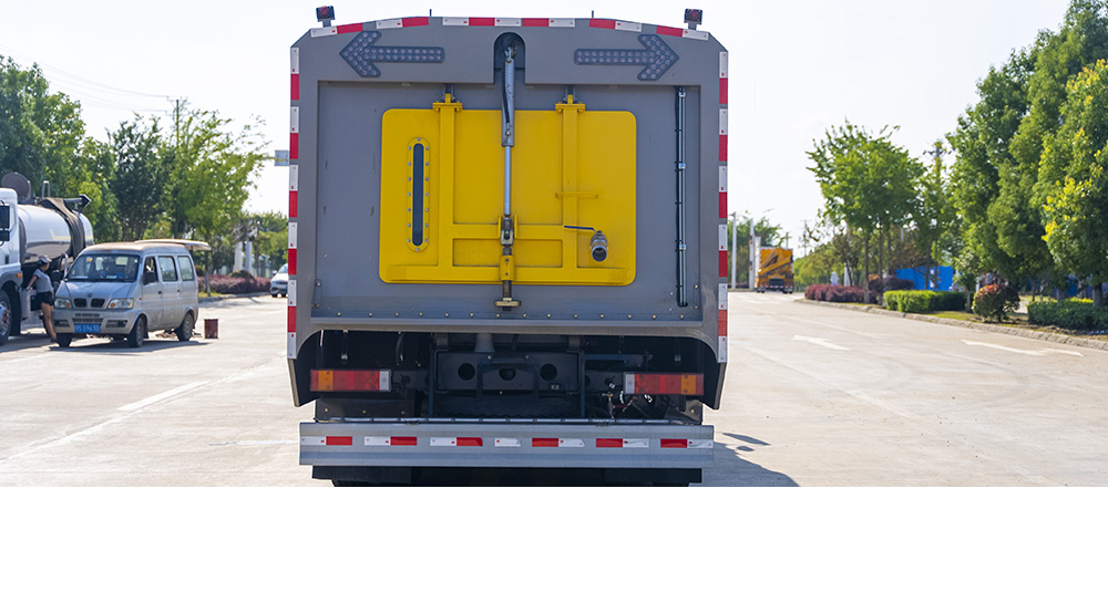 垃圾箱采用长方形瓦楞结构,上装结构可靠,造型美观,车辆使用寿命长电机。高压水泵、电气元件、液压元件采用知名品牌产品,质量可靠。垃圾箱材质采用不锈钢材质,配备专用高效风机,综合性能提升35%,作业能耗最高降低28%,风机叶片不易磨损,吸力强劲,清扫效率高。