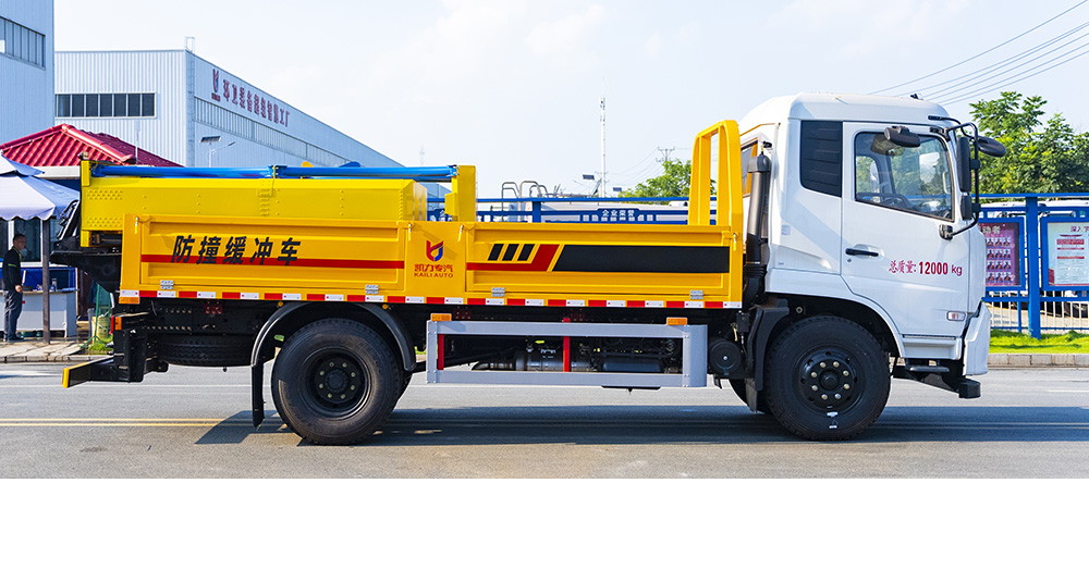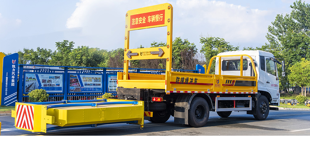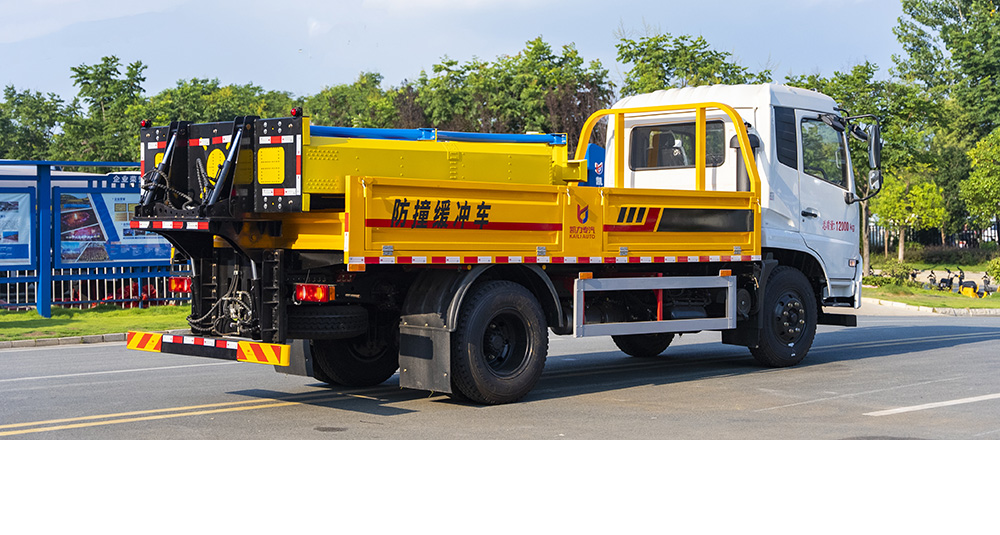 防撞缓冲垫具有两级吸能功效,金属弧形弯管结构在碰撞发生时,弧形管先期吸收巨大的初始碰撞能量,当碰撞能量造成弧形弯管变形后,充满缓冲材料的结构进入变形吸能状态。在碰撞过程中,防撞缓冲垫所有吸能材料和变形部件均被有效包裹在防撞缓冲垫内,不允许任何材料飞溅到其他相邻车道。缓冲垫工作及行驶过程中均具备同步灯光系统(转向灯、刹车灯、驻车灯,条形爆闪灯等)。