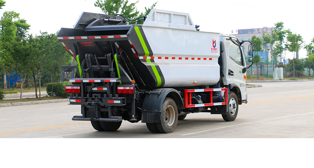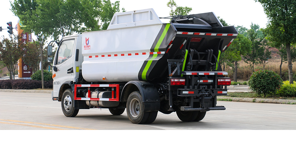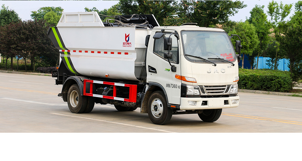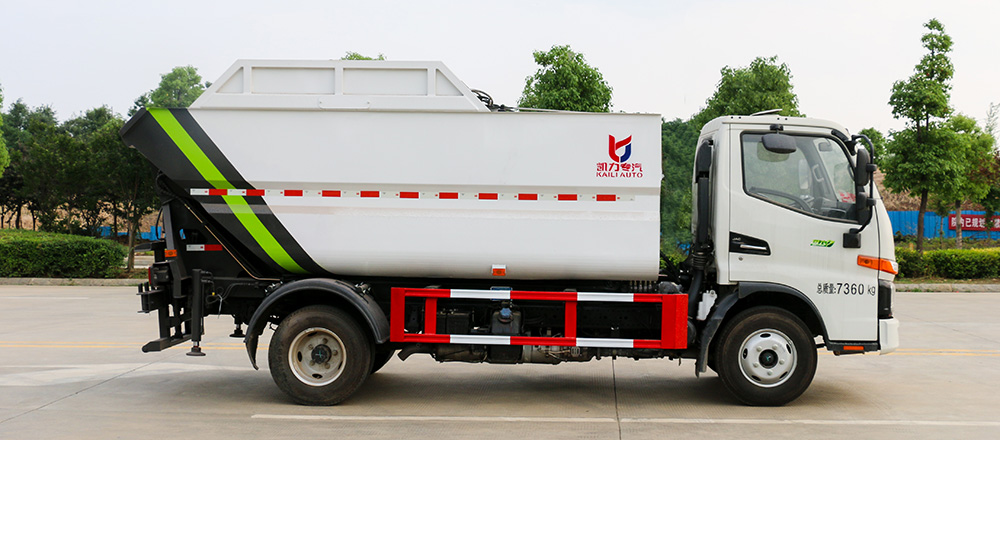凯力风后装式自装卸垃圾车是凯力汽车集团针对城区垃圾运输“跑冒滴漏”等问题,专业研发生产的一款新型的垃圾收运车型,其核心优势是采用开口朝上的船形箱体设计,可做到100%垃圾无泄漏,并且具有刮板压缩和高位自卸功能,装载量大,卸料干净。