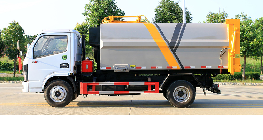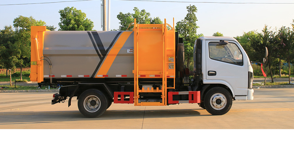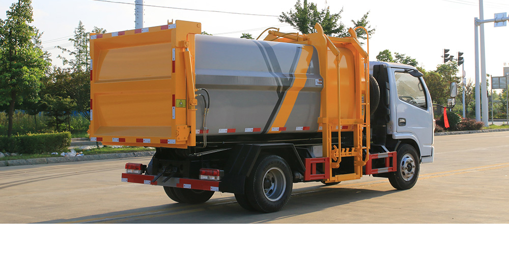 箱体采用武钢优质碳钢制作,造型美观,耐腐蚀性能好,投料口采用密闭形式,防止气味散发;该车液压系统简单,采用电控、手控双系统,可实现一键控制,具有操作简便、装载容量大、故障率低、维护方便等优点。