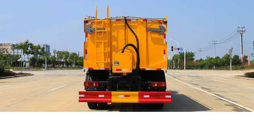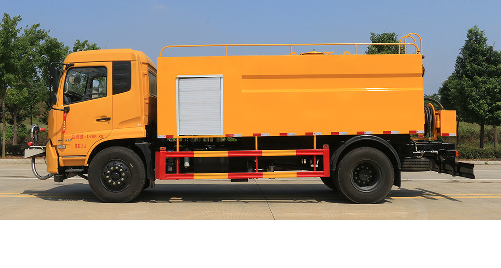 高压清洗车也称之为管道疏通车,通过高压水流产生的强大压力冲开被堵塞的管道。主要组成部分为罐体、高压泵、液压系统等。高压清洗车主要用于清洗城市下水道、管道的沉积物以及死角泥沟的疏通,也可用于清洗工业排液管道和墙面、公路、广场地面。高压清洗车还可加装洒水装置,安装绿化洒水炮、前冲、后酒、侧喷,可进行绿化洒水、喷雾、抑尘、高压冲洗路面等,紧急时可用于救火。通过高压泵将水加压至数百个大气压以上,再通过细小孔径的喷射装置转换为高速的微细射流水,这种射流水的速度具有巨大的打击能量,可以完成不同种类的任务。将这种高度聚能的水射流用来完成各种管道疏通、清淤作业的技术称为"高压管道疏通"。