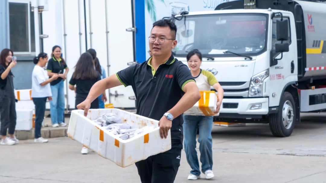发放现场热闹又温馨,员工们的脸上洋溢着幸福的笑容,大家有序地领取着来自集团公司的沉甸甸的爱意。甲鱼寓意着健康长寿,腊肉则承载着家的味道,这份独特的组合不仅是物质上的馈赠,更是公司对员工们辛勤付出的认可和感谢。一位员工感慨地说道:“每年中秋都能收到公司的贴心福利,让我们感受到了家一般的温暖,也更加有动力为公司的发展贡献自己的力量。”