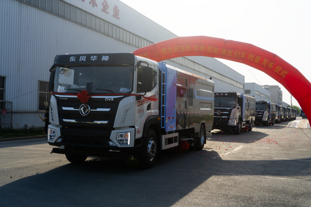 凯力风东风华神新能源洗扫车批量发车仪式顺利举办,规模化交付彰显集团硬核智造实力,以绿色智能洗扫装备赋能环卫事业升级,拓宽专用车市场发展空间。