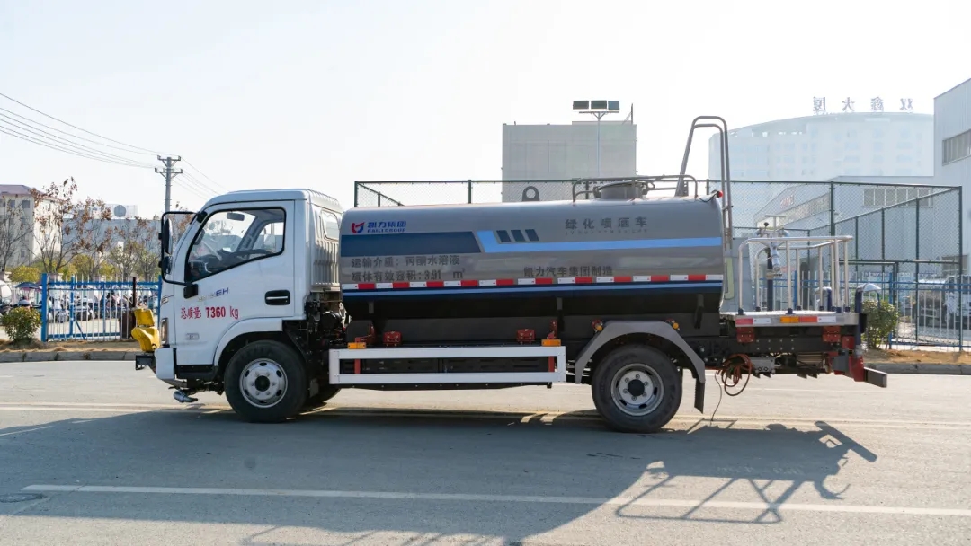 凯力风新能源洒水车延续了凯力一贯的经典风格。整车标准化生产,罐体采用自动流水线生产,下料、拼板自动焊、封头旋压成型、罐体一次包罐成型、环形自动焊等国内先进生产工艺。