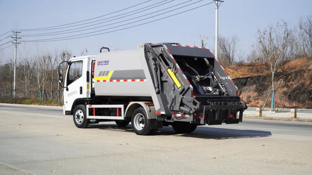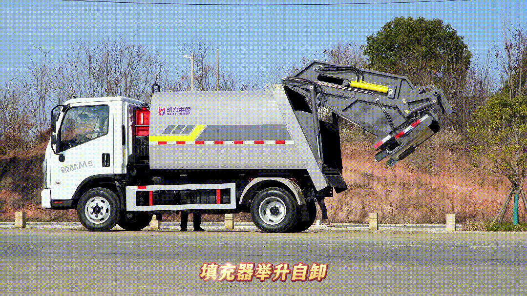 凯力KLF5041ZYSB6型压缩垃圾车,基于福田领航M5底盘(轴距2800mm)开发,搭载150马力国VI柴油机(110kW)。