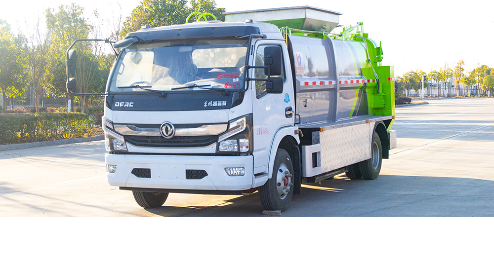 垃圾箱底部设置大量过滤孔,实现箱内餐厨垃圾固液的初步分离,装载能力强并配备有大容量污水箱;配套液压驱动高压清洗系统,可对整车及工作装置进行清洗。