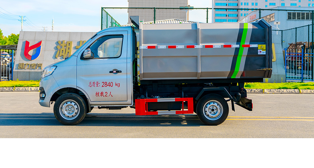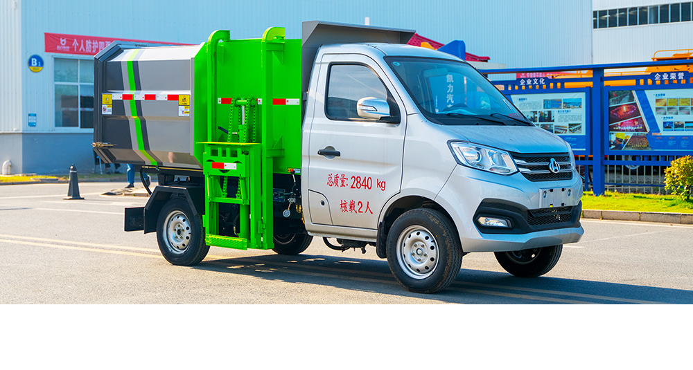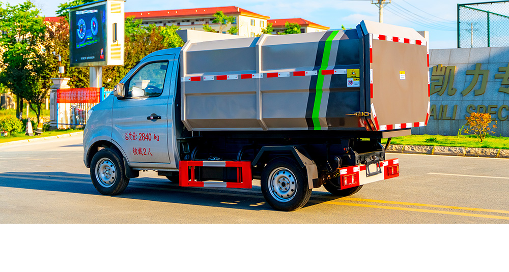 一车多配,能与多个垃圾桶联合作业,循环运输,连杆上料机构具有结构简单、性能可靠、上料循环时间短、运行效率高等优点;垃圾箱上侧设有挡板、翻桶架,投料口独特设计,可防止上料时垃圾漏洒。
