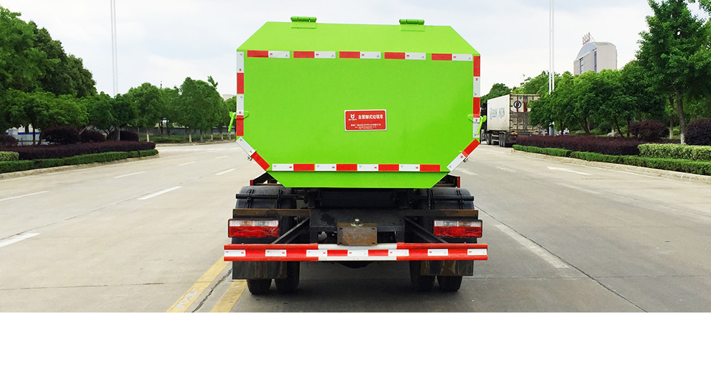一车多配,能与多个垃圾桶联合作业,循环运输,连杆上料机构具有结构简单、性能可靠、上料循环时间短、运行效率高等优点;垃圾箱上侧设有挡板、翻桶架,投料口独特设计,可防止上料时垃圾漏洒。