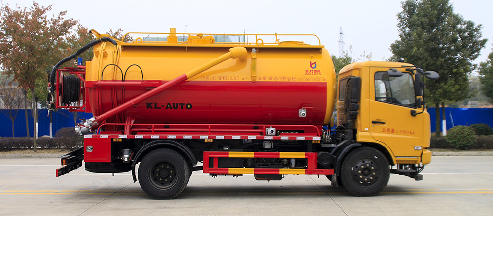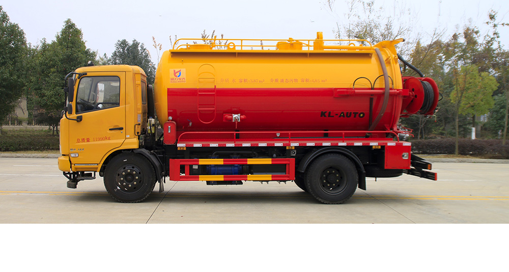 该车由汽车底盘、取力器、传动轴、真空吸污泵、水气分离器、多路换向阀、清水箱、视污管、真空压力表、管网系统等组成。用于抽吸污水、污泥浆和混有悬浮杂物泥渣、小砖块、碎石等。具有抽吸效率高、自吸自排及直灌等特点。
