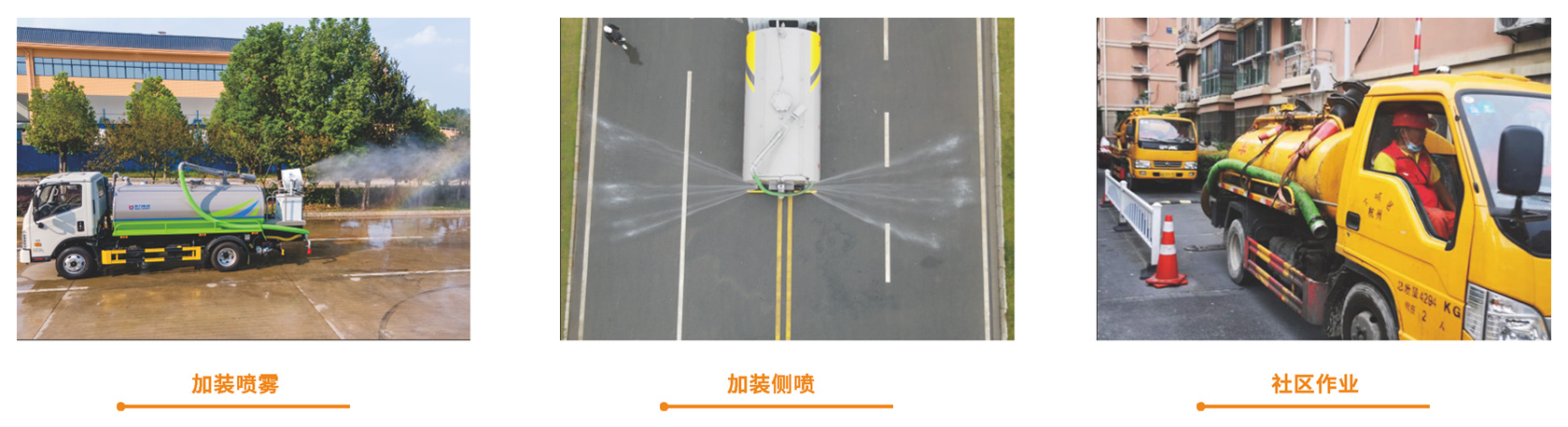 吸粪车由汽车底盘、油水分离器、水气分离器、专用真空吸粪泵、容积压力表、管网系统、吸物导管、自流阀、真空罐体、连通器(视类窗)、全自动防溢阀、360°旋转吊杆组成,多方位无死角抽污,罐口可直接装载污水。吸粪车用于抽吸粪便、污水、污泥浆和混有较小悬浮杂物的液体,还可用于突发环境污染事故的应急处理。