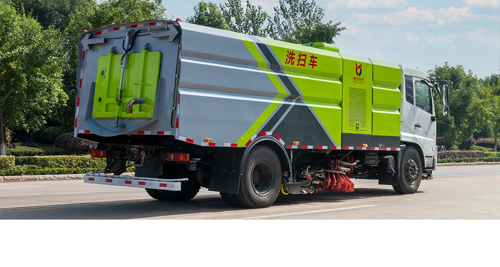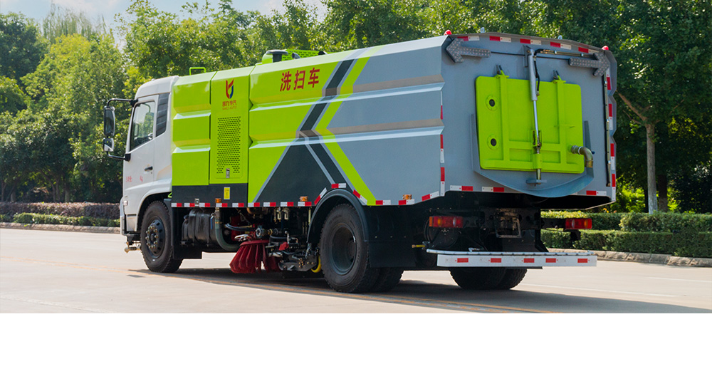 具有路面洒水、冲洗、扫路、清洗、降尘等多种功能。同时配有高压水枪可对道路卫生死角、牛皮癣及车辆自身进行清洁作业采用“中置两扫盘+中置宽吸嘴+内置高压主喷杆+左右高压侧喷杆”布置,小流量高压水泵,左右喷杆V形布置和吸嘴内置主喷杆无间隙高压喷嘴喷水,洗净率高、作业速度快。