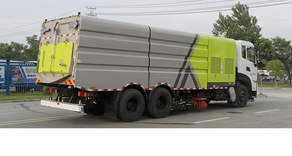 垃圾箱采用长方形瓦楞结构,上装结构可靠,造型美观,车辆使用寿命长电机。高压水泵、电气元件、液压元件采用知名品牌产品,质量可靠。垃圾箱材质采用不锈钢材质,配备专用高效风机,综合性能提升35%,作业能耗最高降低28%,风机叶片不易磨损,吸力强劲,清扫效率高。