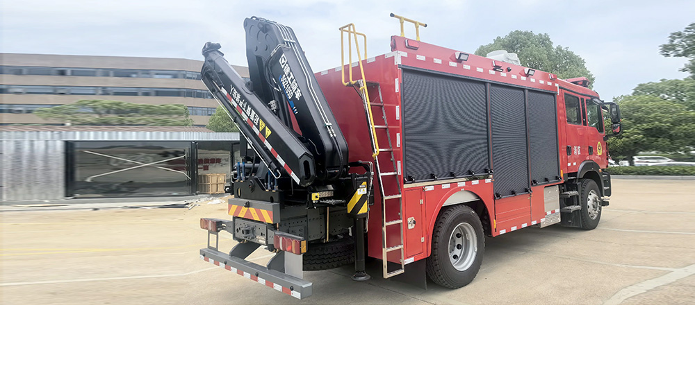 车后有液压起重机,用于起重救援作业。