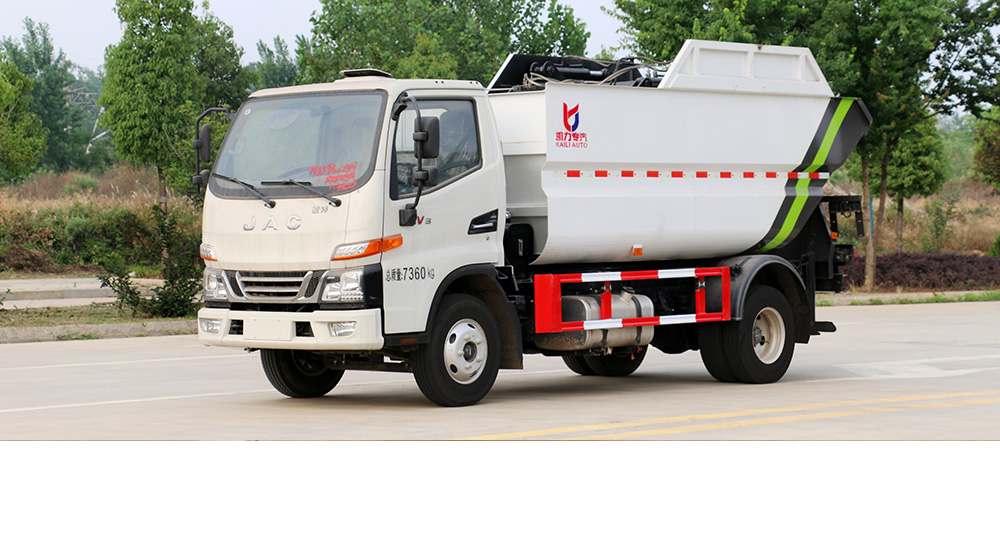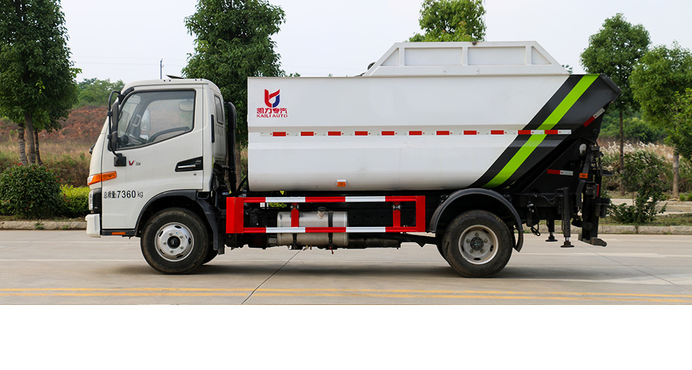 凯力风后装式自装卸垃圾车是凯力汽车集团针对城区垃圾运输“跑冒滴漏”等问题,专业研发生产的一款新型的垃圾收运车型,其核心优势是采用开口朝上的船形箱体设计,可做到100%垃圾无泄漏,并且具有刮板压缩和高位自卸功能,装载量大,卸料干净。