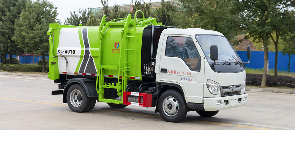 凯力风侧装压缩式垃圾车是通过拉杆提升垃圾桶自动倒入垃圾,并往车厢后方推动挤压垃圾,达到压缩垃圾的目的,压缩原理是采用机、电、液压联动控制系统、电脑控制及手动操作系统,通过填装器和推铲等装置实现垃圾倒入、压碎或压扁,并将垃圾挤入车厢压实和推卸。